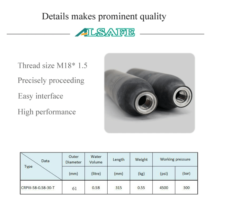 Aluminum inner shell, fully wrapped with high strength carbon fiber, glass fiber and epoxy resin. |