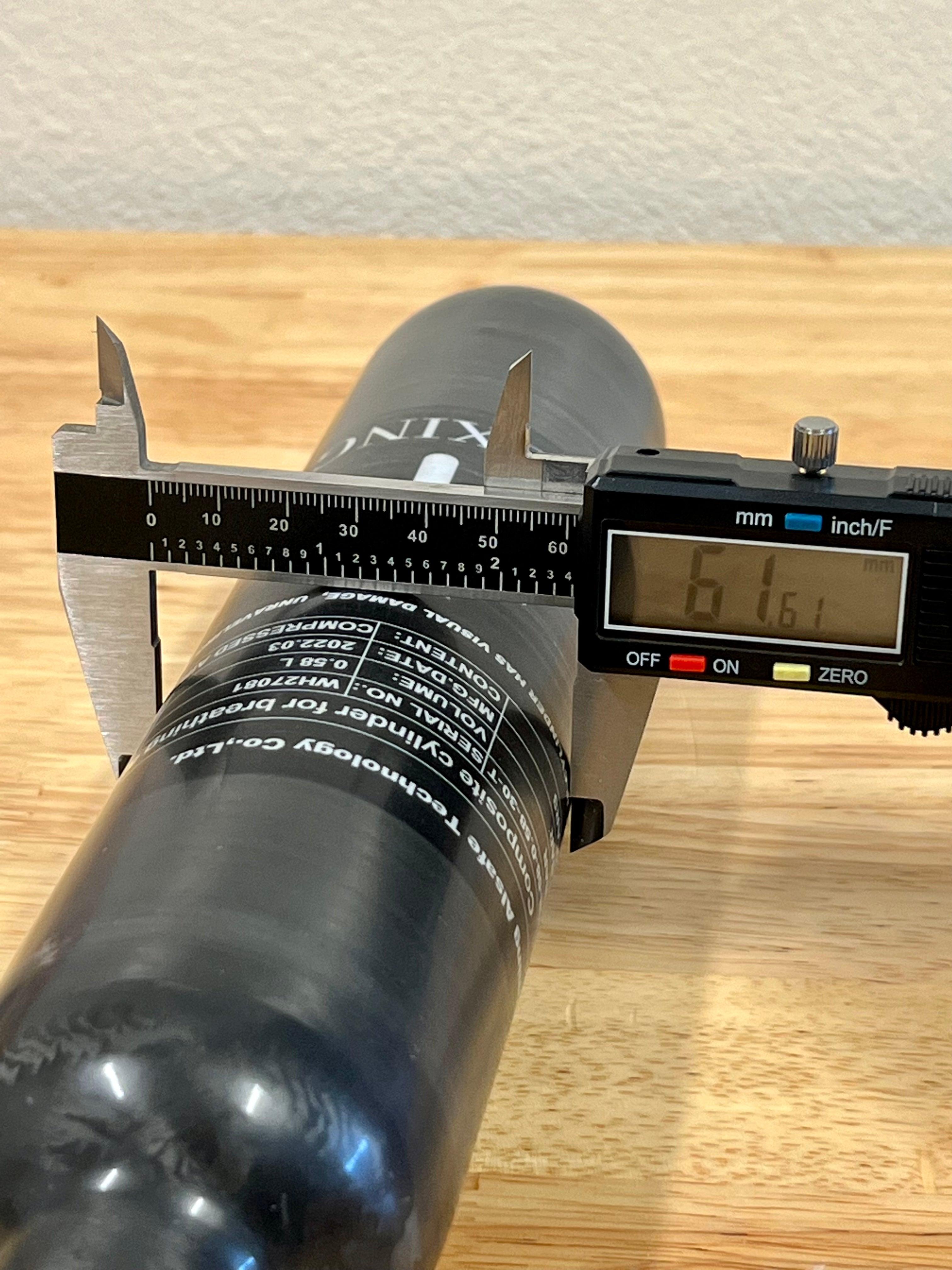 See ther gallery lineup for product dimensions. This bottle is otherwise M18x1.5mm female threaded and compatible with most PCP rifles that accept a bottle. Key features to this product is that it is a comparably cheap upgrade for a rifle like a REMIMEX THRONE Gen 2, boosting your air storage volume up to 580cc from 425cc. This bottle can be filled up to 300 BAR, just make sure your rifle's seals likewise can deal with those sorts of pressures.