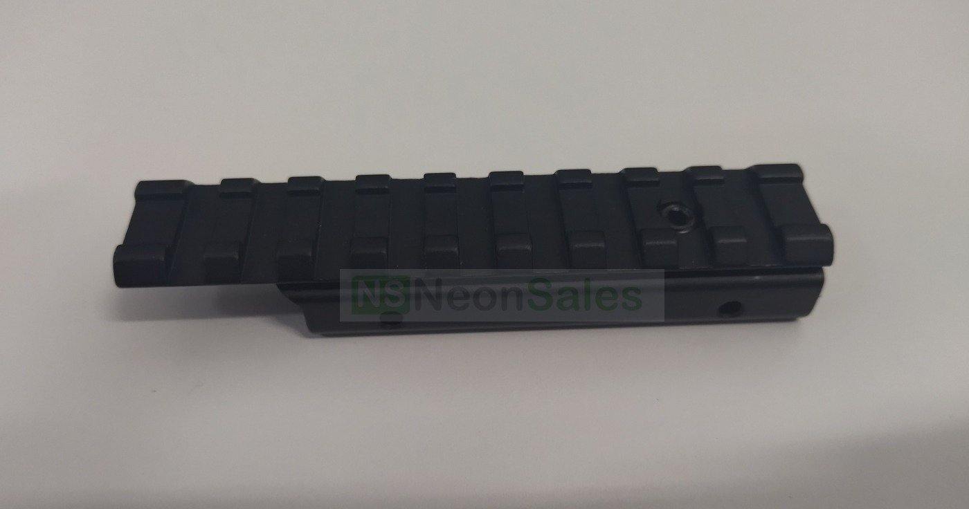 99.50 mm long weaver rail addition which attaches onto the dovetail milled out on a rifle's action by means of 2x steel cheesehead lockscrews that affixes the loose jaw onto the dovetail. It will accomodate for a dovetail width of anything from 9-15mm, though on a recoiling rifle, we recommend not going beyond 11mm with this part, to allow for a length of the threading to still hold.