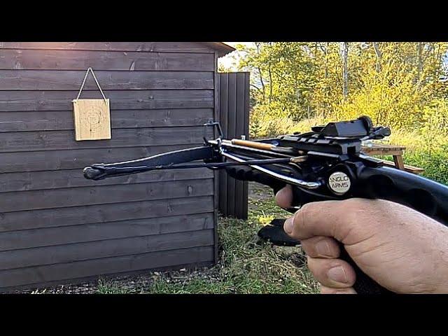 EK Archery Cobra 80 pistol crossbow is in the budget section, when talking about crossbows, but it's still quite powerfull little bow for target shooting. The crossbow has 80lbs draw weight, and a fast and easy cocking mechanism.