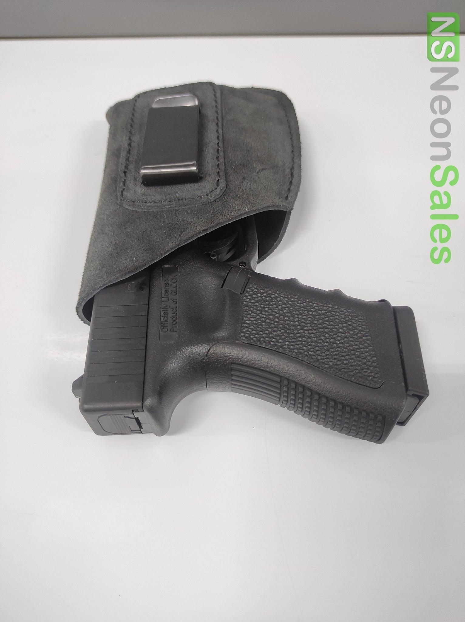 This is the SUEDE holster range from EL PASO - This type of holster is semi-rigid - firmer than neoprene, but not as stiff as nylon. The suede is on the exterior of the holster and does feature a tacky feel to it. The interior of the holster (which the pistol holsters into) features the smooth / polished surface. Otherwise, we do like the lovely chestnut colour of the holster.