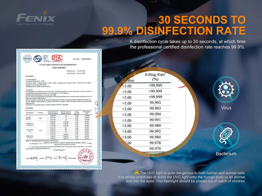 The FENIX LD32 UVC Disinfecting Flashlight is a compact, multi-functional torch that combines a high-output LED beam with a powerful ultraviolet-C sterilisation light. Perfect for everyday carry, travel, and field use, it gives you bright illumination and an easy way to disinfect commonly touched surfaces in seconds.