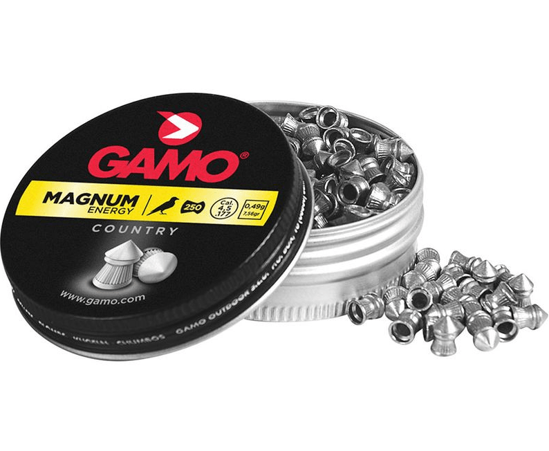 The GAMO 4.5MM MAGNUM 7.56GR pellets deliver superior performance with its pointed pellet tip for increased penetration and a double ring design for a powerful mushroom effect upon impact. Perfect for hunting or target practice, this pack of 250 pellets will enhance your accuracy and success.