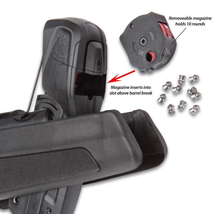 Our patent-pending technology enables you to shoot upto 10 pellets without reloading. Simply break the barrel and fire for lightning-quick follow-up shots. This technology is available only in select Gamo air rifles.