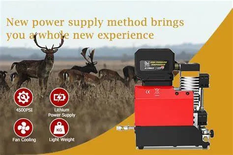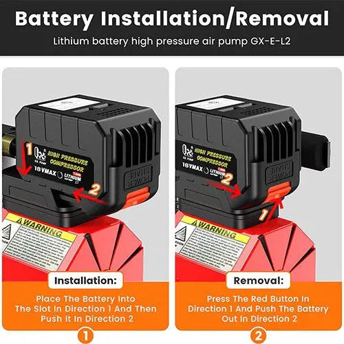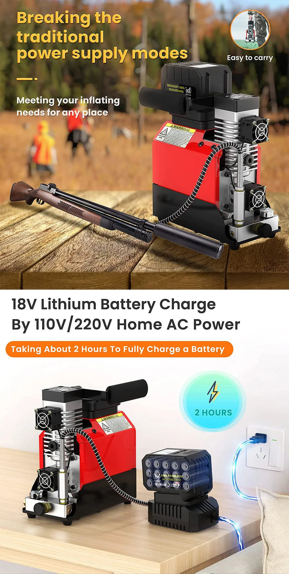 (PCP compressor south africa) The GX E-L2 Portable 18V / 220V Cordless PCP Airgun Compressor is a 4500Psi/300Bar, Oil-Free and powered by 1 x Lithium-Ion Battery (Included) or 110v to 18V Converter (Sold Separately) for Home Outlet