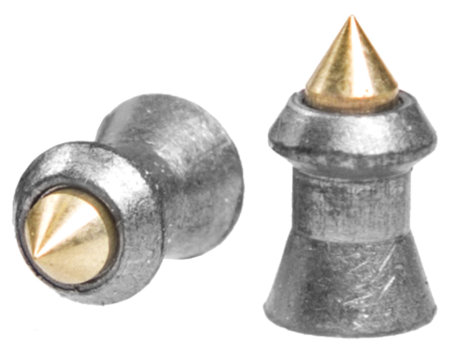 Medium-weight, accurate hunting pellet for medium ranges. High impact and penetration. Aerodynamic design through metal tip. Controlled expansion. Smooth with brass tip.