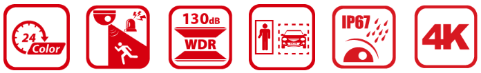 Smart EventLine crossing detection, intrusion detection, region entrance detection, region exiting detection (support alarm triggering by specified target types (human and vehicle)), scene change detection