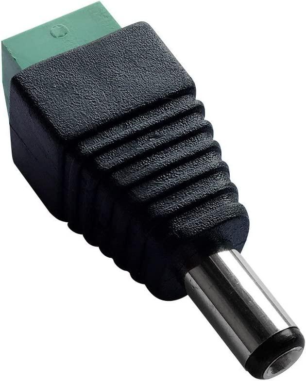 Standard male DC barrel connectors used to deliver 12V DC to each camera from the power supply.