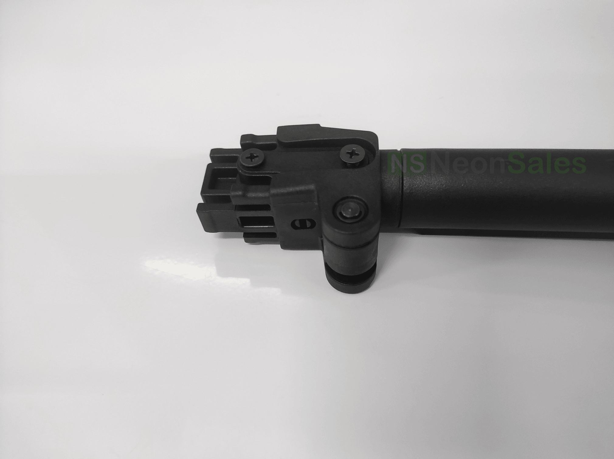 The tube is connected to the adaptor by a screw and a nut inside the tube.