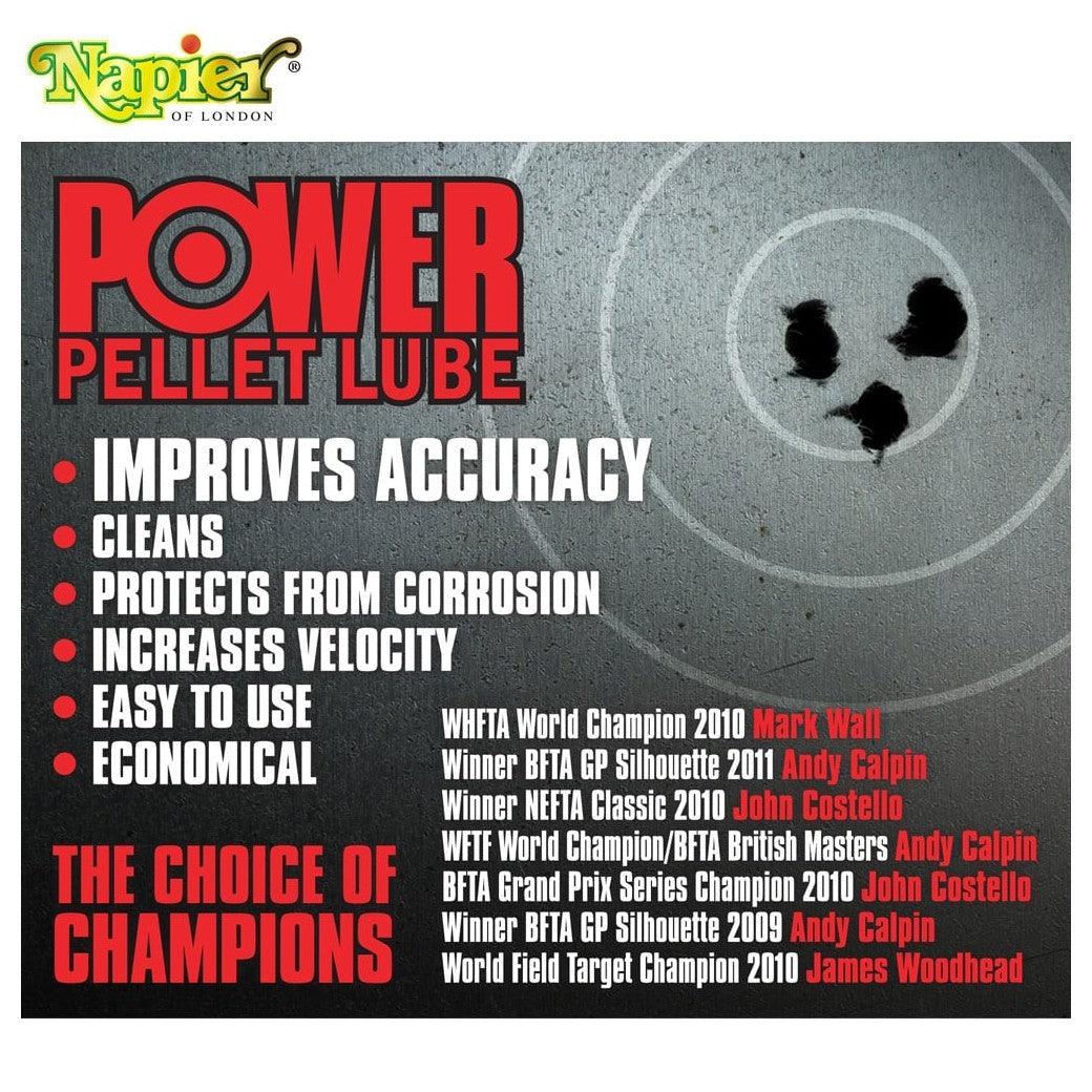 TheNapier Power Pellet Lube 10mlis a product designed to improve the performance of airgun pellets. Here are some key features and benefits: