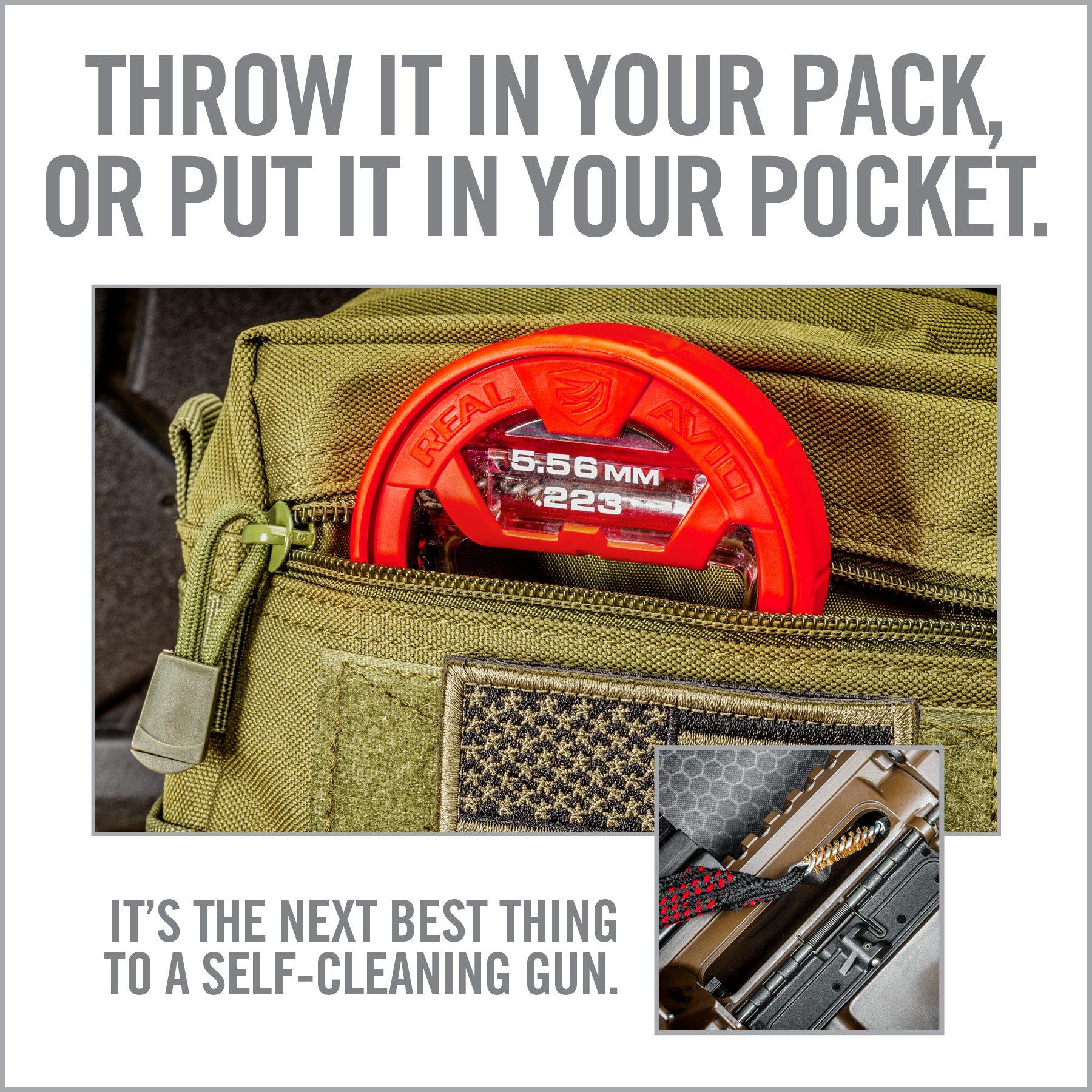 The single piece Dual Action Cable with integrated phosphor bronze brush and braided mop wraps around the unique Flex-Case Handle to keep the system stowed and organized. To use, simply flip, feed, clip and pull. Throw it in your pack, or put it in your pocket. It’s the next best thing to a self-cleaning gun.
