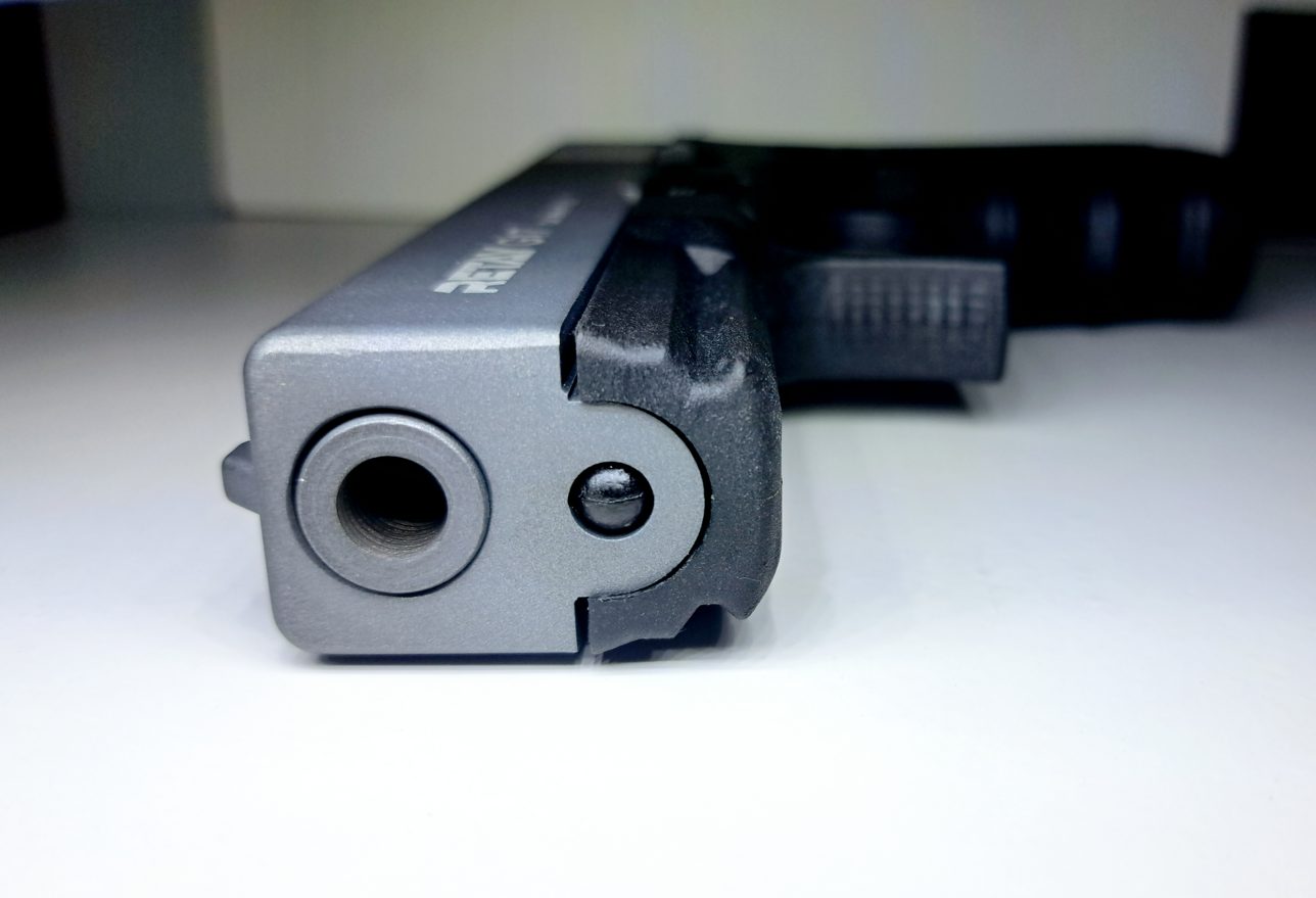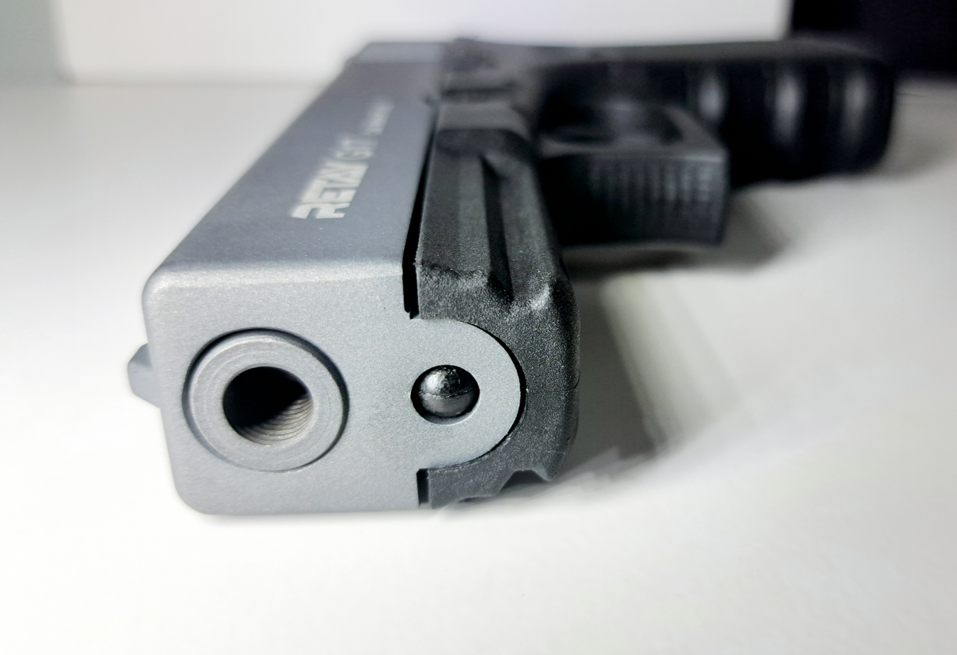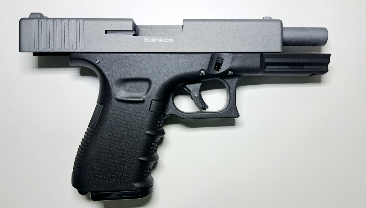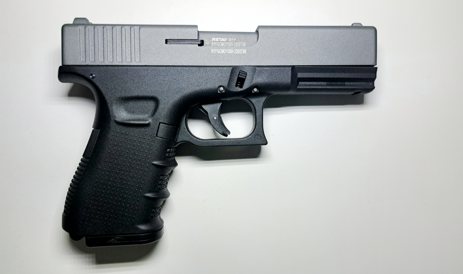 Design: Modeled after the Glock 17, featuring a polymer frame with a metal slide.