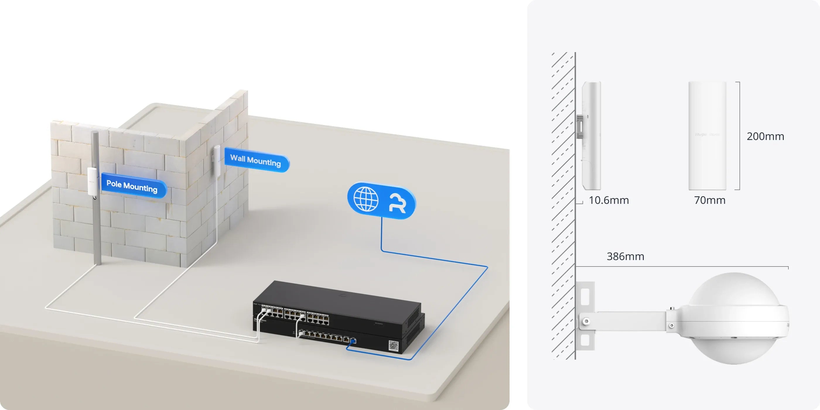 Flexible Power Options – Compatible with 802.3af/at PoE, 24V passive PoE, and 48V passive PoE for convenient installation.