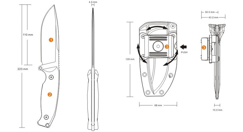 You can keep your Ruike Jager F118 close with the plastic pouch which has a wonderfully thin and compact design. Additionally useful is the sturdy belt clip: with a 360-degree rotation angle which will follow you wherever you go. With a torx 8 bit you can easily turn this right-handed knife into a left-handed one.