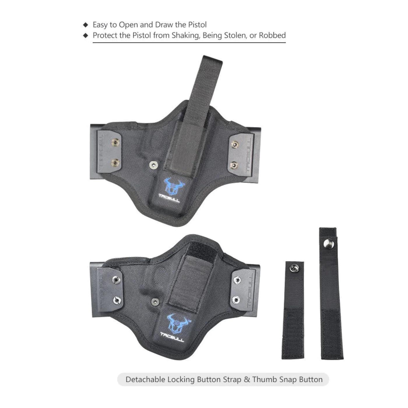 - The detachable locking button strap protects the pistol from shaking, being stolen, or robbed and the thumb snap button allows you to open and draw the gun with one thumb finger.