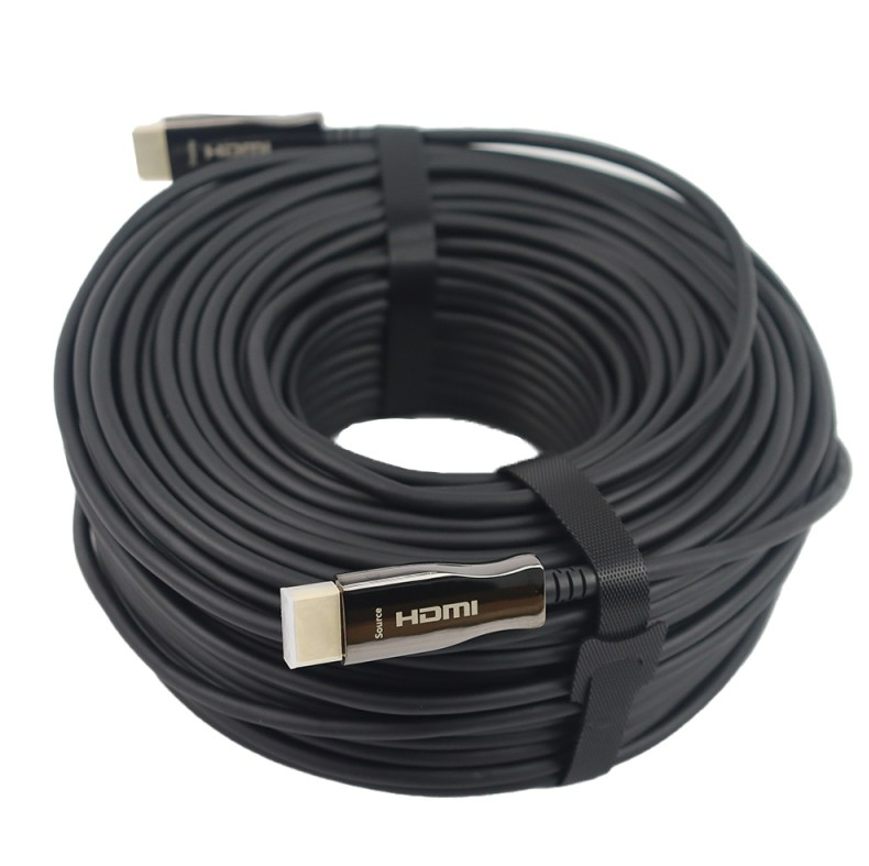 A 60-meter (approximately 197 feet) unbranded fiber optic HDMI cable is designed to transmit high-definition audio and video signals over long distances without signal degradation. Unlike traditional copper HDMI cables, fiber optic cables utilize light to carry data, ensuring minimal interference and maintaining signal integrity over extended lengths.